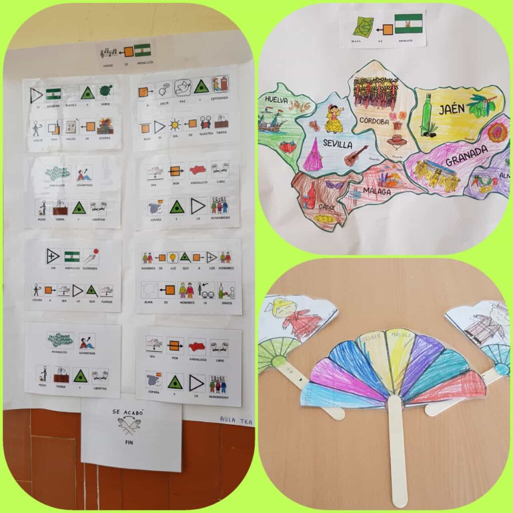 Teatro de títeres , himno de Andalucía con pictogramas de nuestro aula TEA, desayuno con productos típicos de nuestra tierra.
